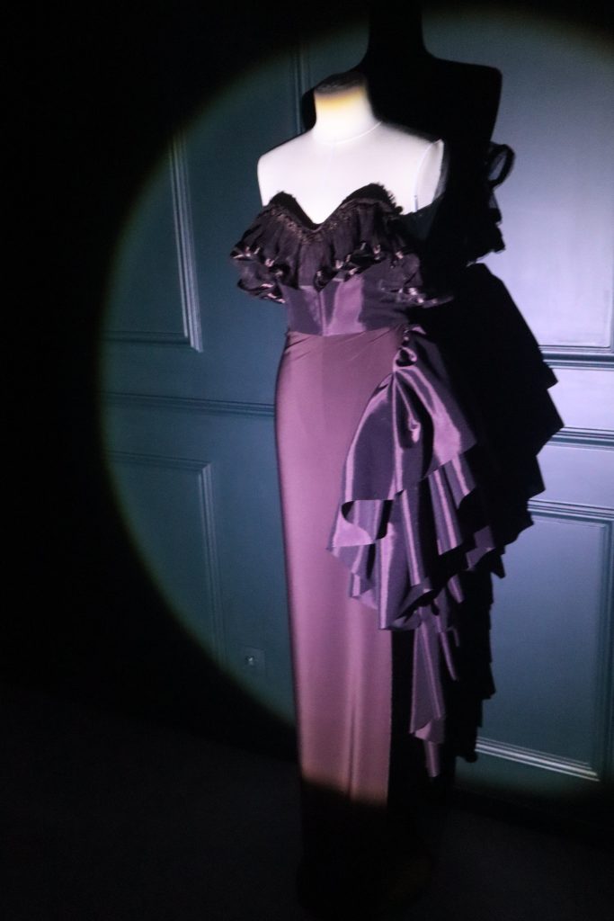 Son bustier chocolat, subtilement ajusté, devient le point focal de cette création. Orné de volants en tulle délicat et bordé d’un satin brillant, il capte la lumière avec douceur, évoquant la richesse des étoffes nobles d’autrefois. Chaque volant, travaillé avec minutie, ajoute une dimension aérienne, jouant sur les contrastes entre opacité et transparence. Ces textures délicates encadrent le décolleté avec une élégance discrète mais assurée, soulignant la féminité avec une touche de légèreté.